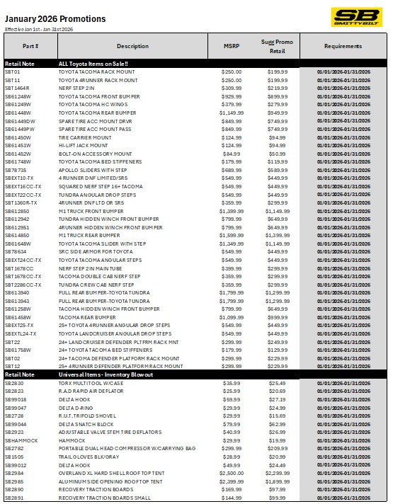 BFCM and 12 Days Promo 2025 MAP Holiday Part Numbers