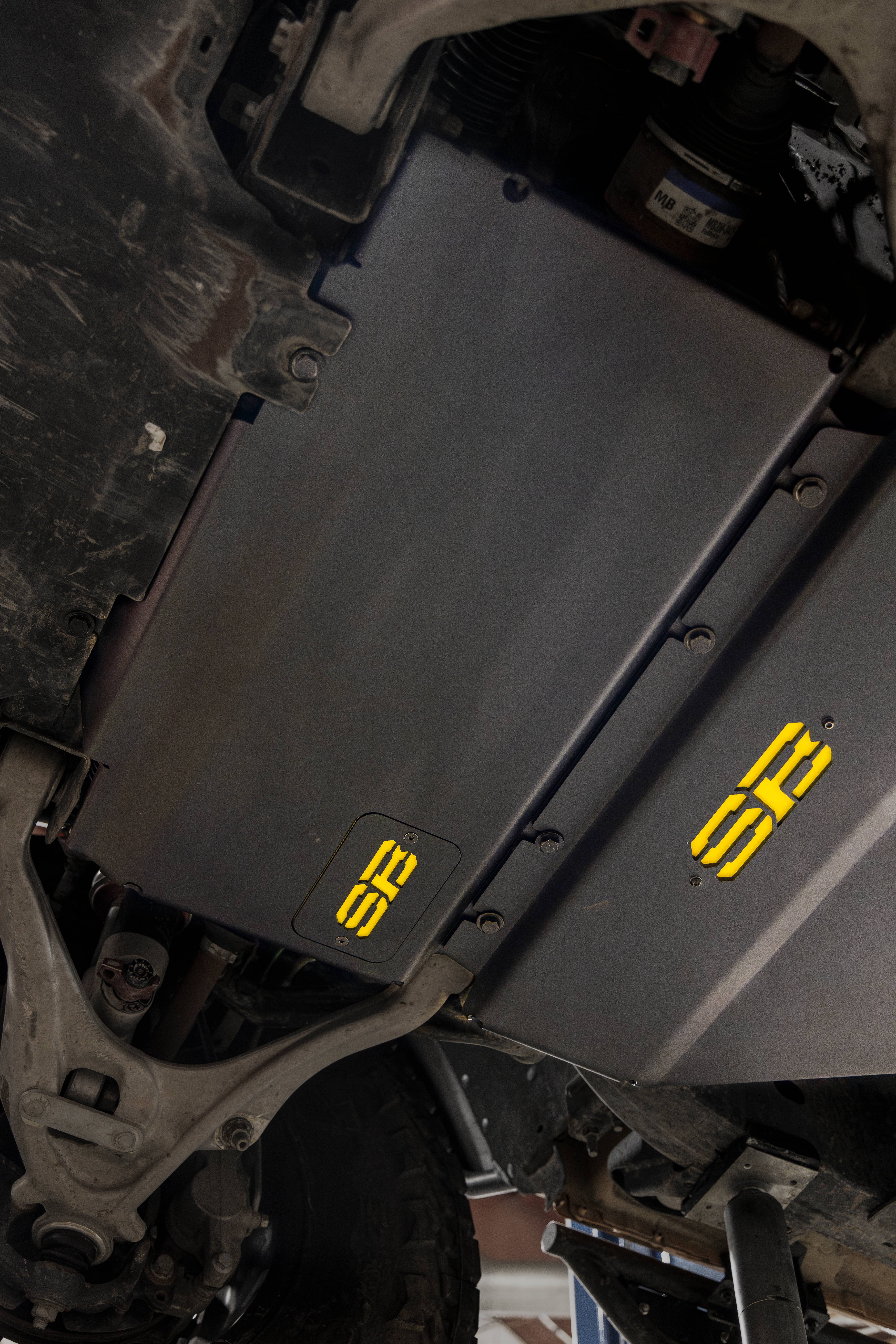 Smittybilt's skid plates for the 2021+ Ford Bronco offer exceptional under-body protection for your vehicle. Designed for the oil, transmission, and transfer case areas, these trail-ready skid plates are powder-coated for durability, giving you the confidence to tackle any obstacle on your off-road adventures.