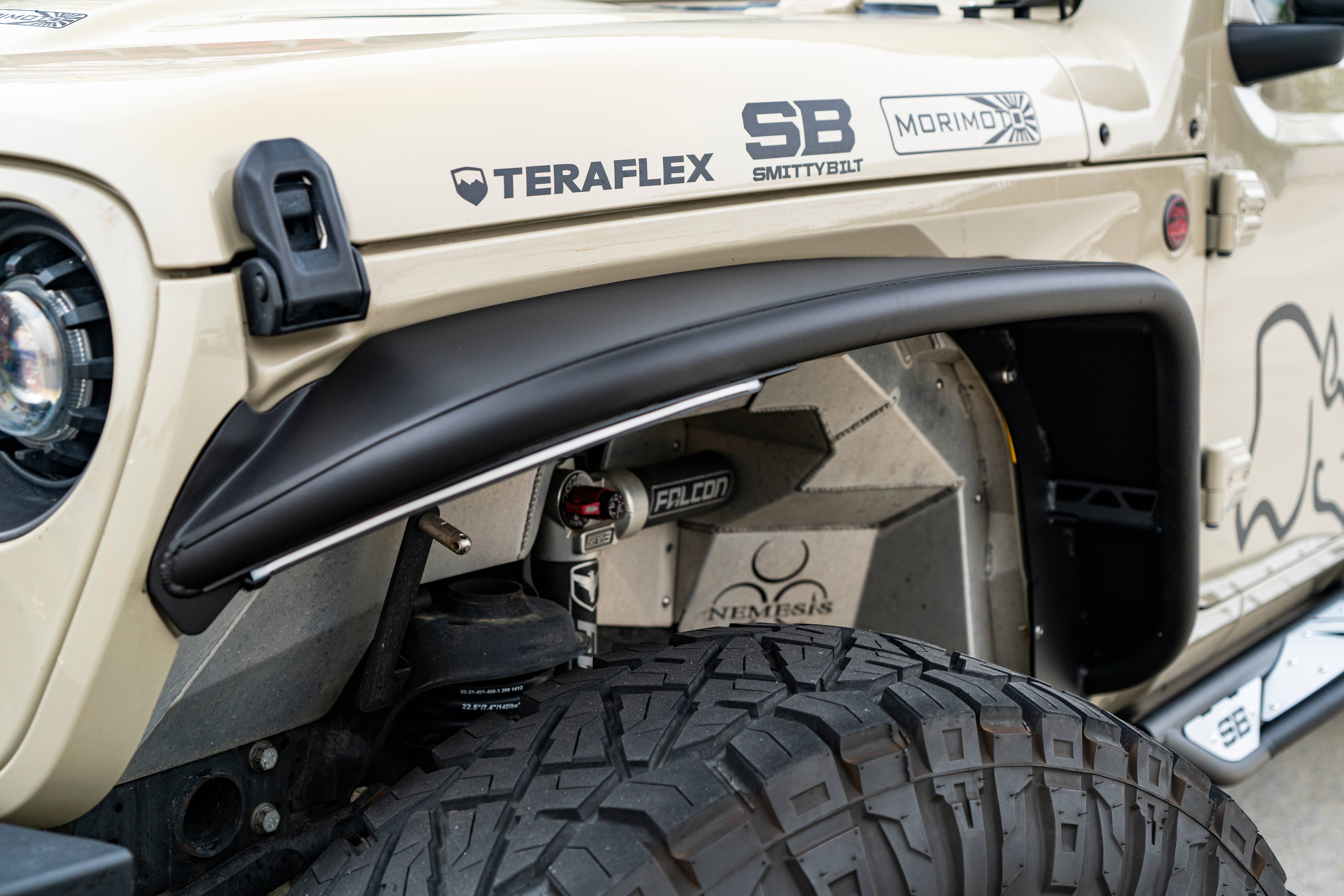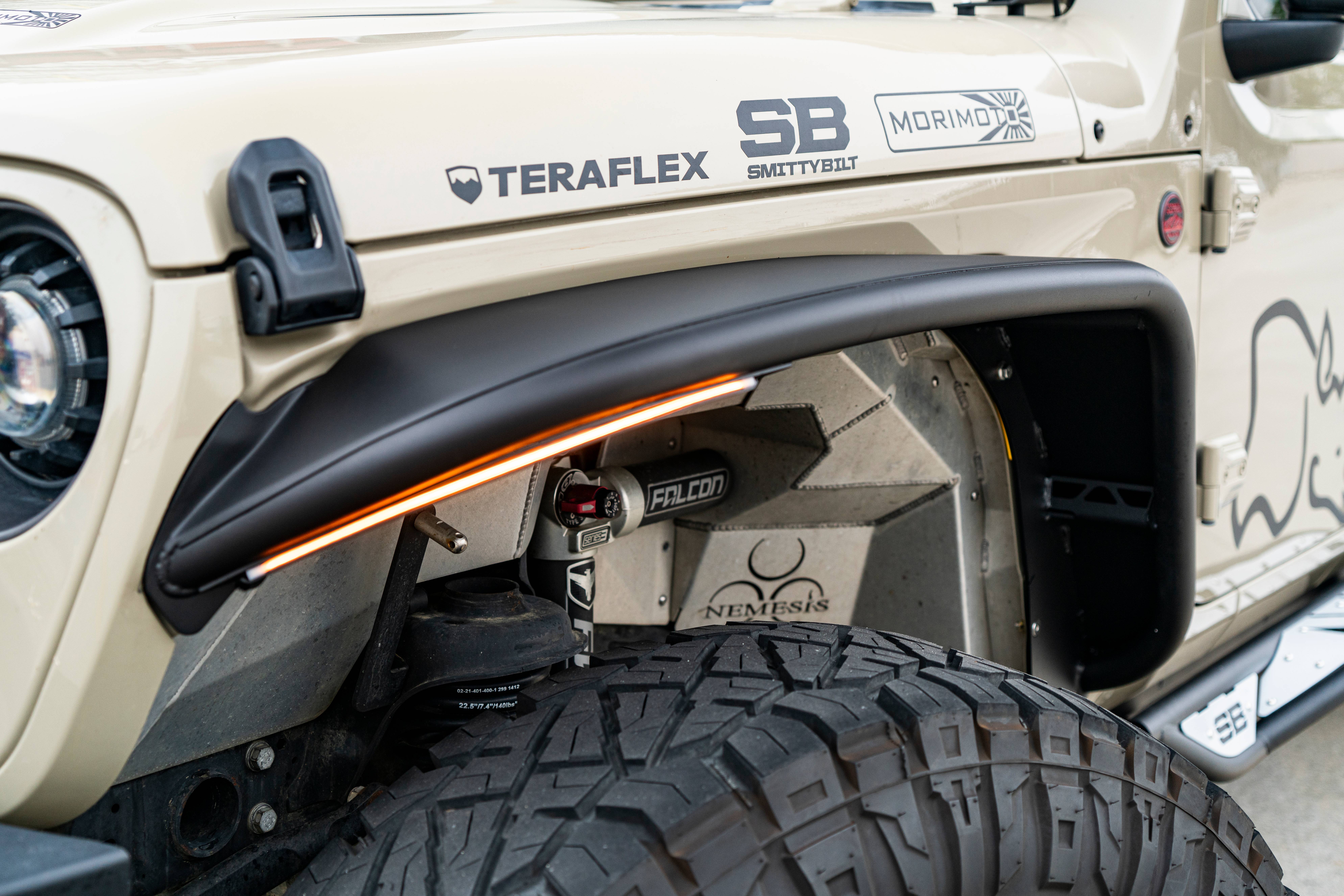 Smittybilt XRC Tube Fenders combine style and durability with sleek, modern design. Made with 1.5" x .120 wall structural tubing and 3/16" laser-cut cold rolled steel, these fenders provide increased articulation and tire clearance. Plug-and-play LED turn signals and marker lights are included for easy installation. Available for 2018+ Jeep Wrangler JL/JLU and 2020+ Gladiator JT in front or rear pairs. Sold as a pair, these fenders feature a light textured finish and come with a Limited Lifetime Structural Warranty and 5-Year Finish Warranty.