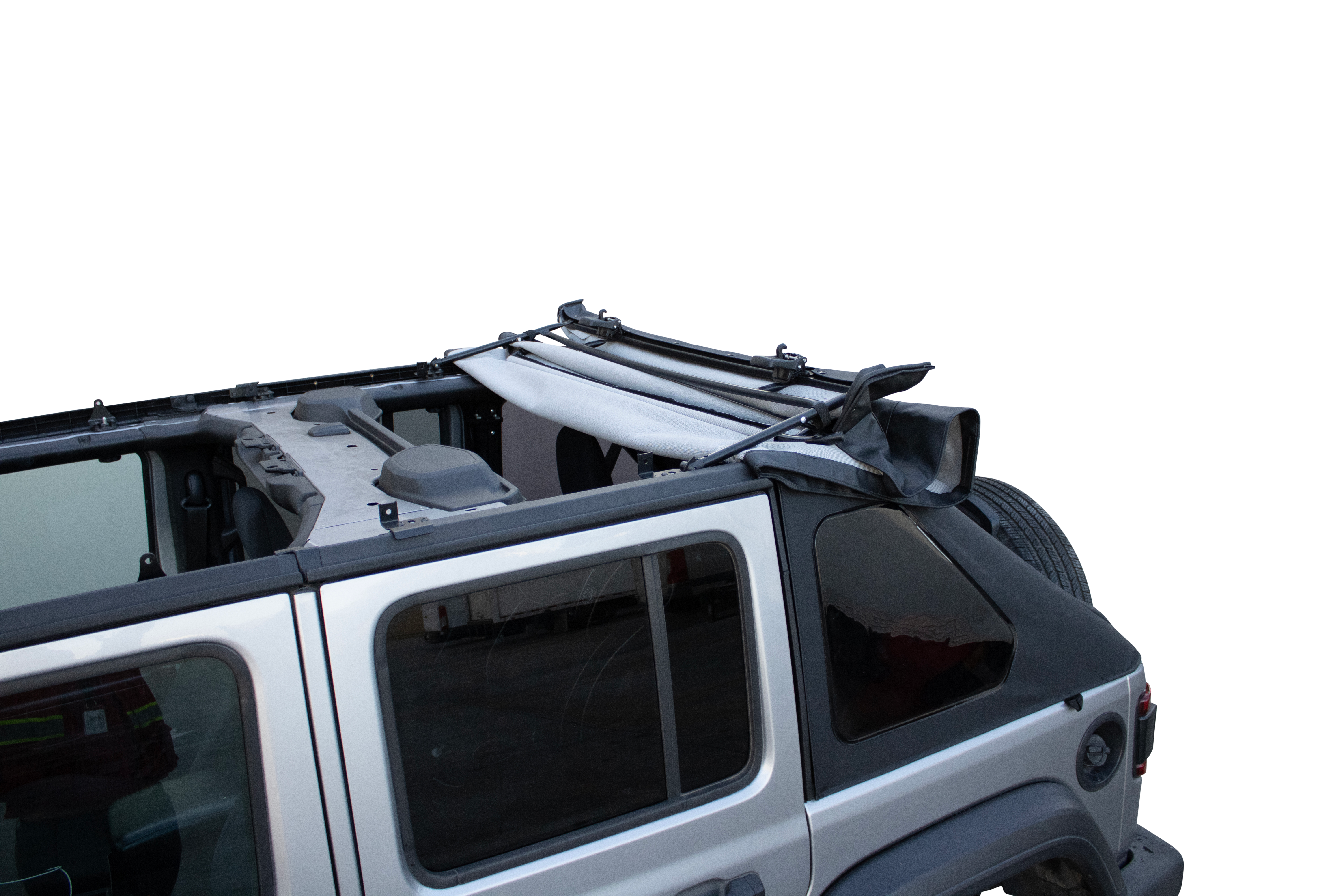 The Smittybilt Bowless Combo Top is the most versatile Jeep top on the market, offering unmatched adaptability for any adventure. Quickly transform your Jeep from an open-air ride to a fully weatherproof top when unexpected rain hits, and just as easily zip out the side and rear windows when the sun returns. With three flexible configurations, this top serves as both an off-road companion and your everyday primary top, complete with internal storage compartments, Molle attachment straps, and easy access for storing side and rear curtains. This kit includes all the required mounting components.