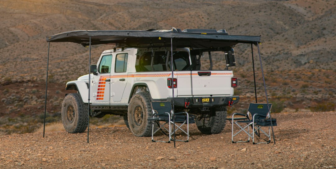 - Overlanding 270° Awning (Driver Side) — Wraparound awning that gives coverage both to the side and rear.